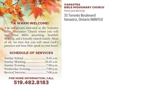 Customization options include: church name, church address, service schedule, event information, and more.